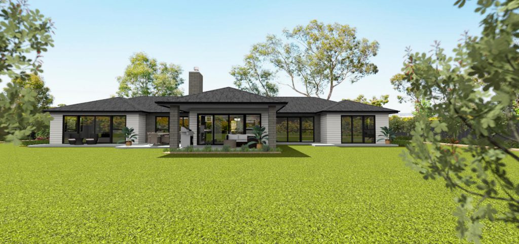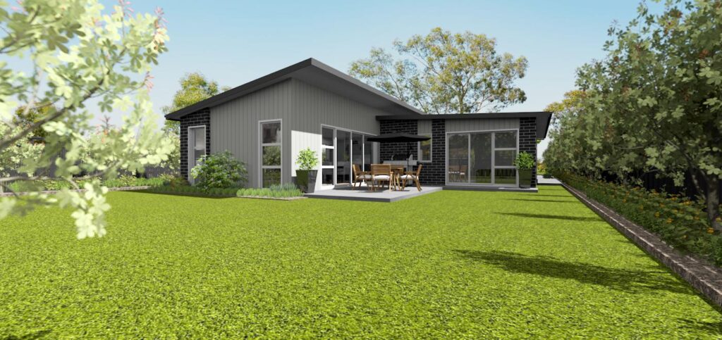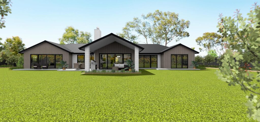 Design and Build start with evaluating your site; including any issues such as Environment, Tanks, Septics, Slope, Trees, and any other Obstructions. We would plan the positioning of your home to include any views or outlooks important to you. This can be an on-site meet or via Zoom with videos and photos of your section. After establishing the above conditions we would hold a design brief meeting. This meeting would include discussions around Exterior Style, Products, Materials and Layout to suit you and your family. We can use your site photos for a backdrop and render them with your virtual home to give a realistic feel. See the example below of this client’s beautiful waterfront property.